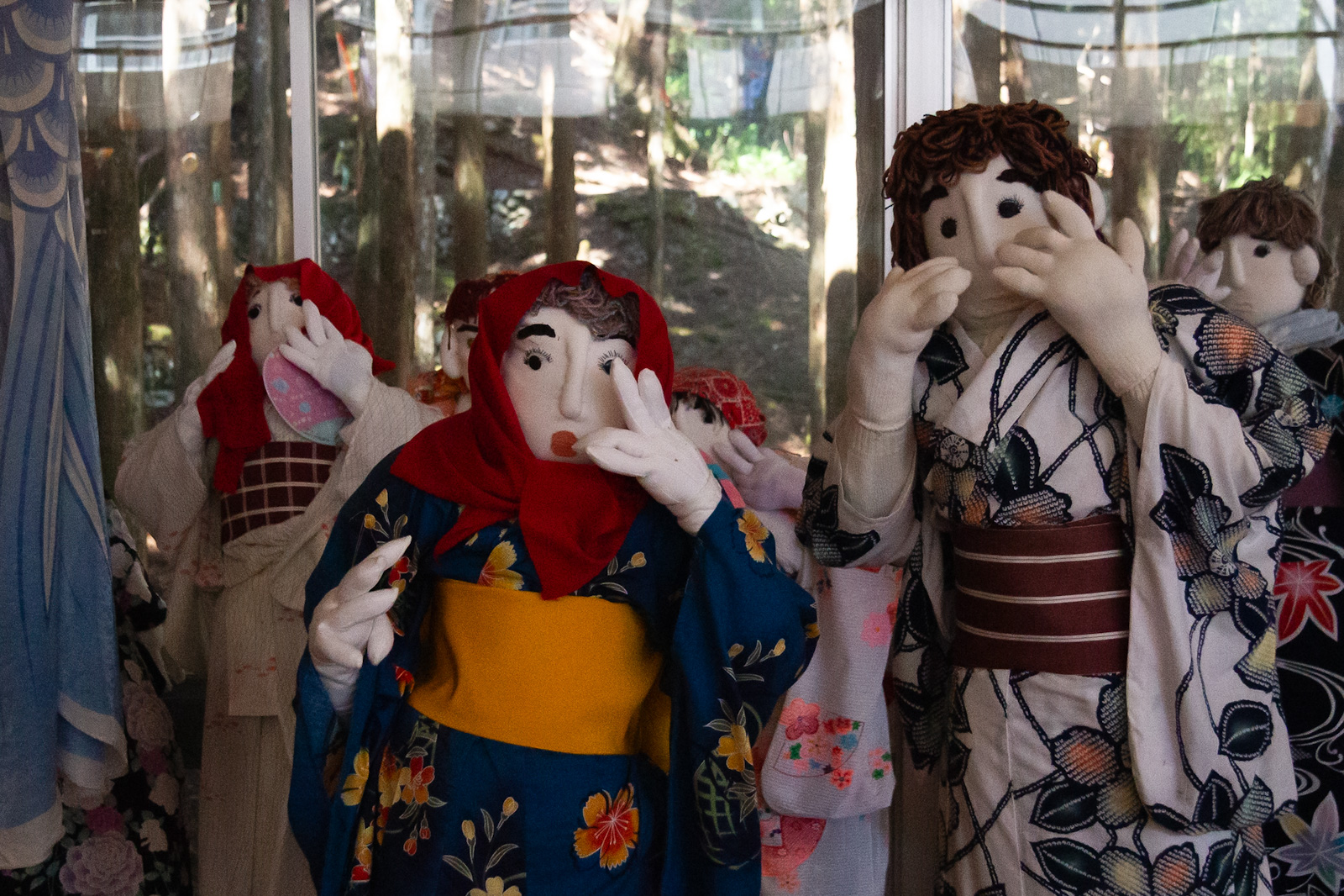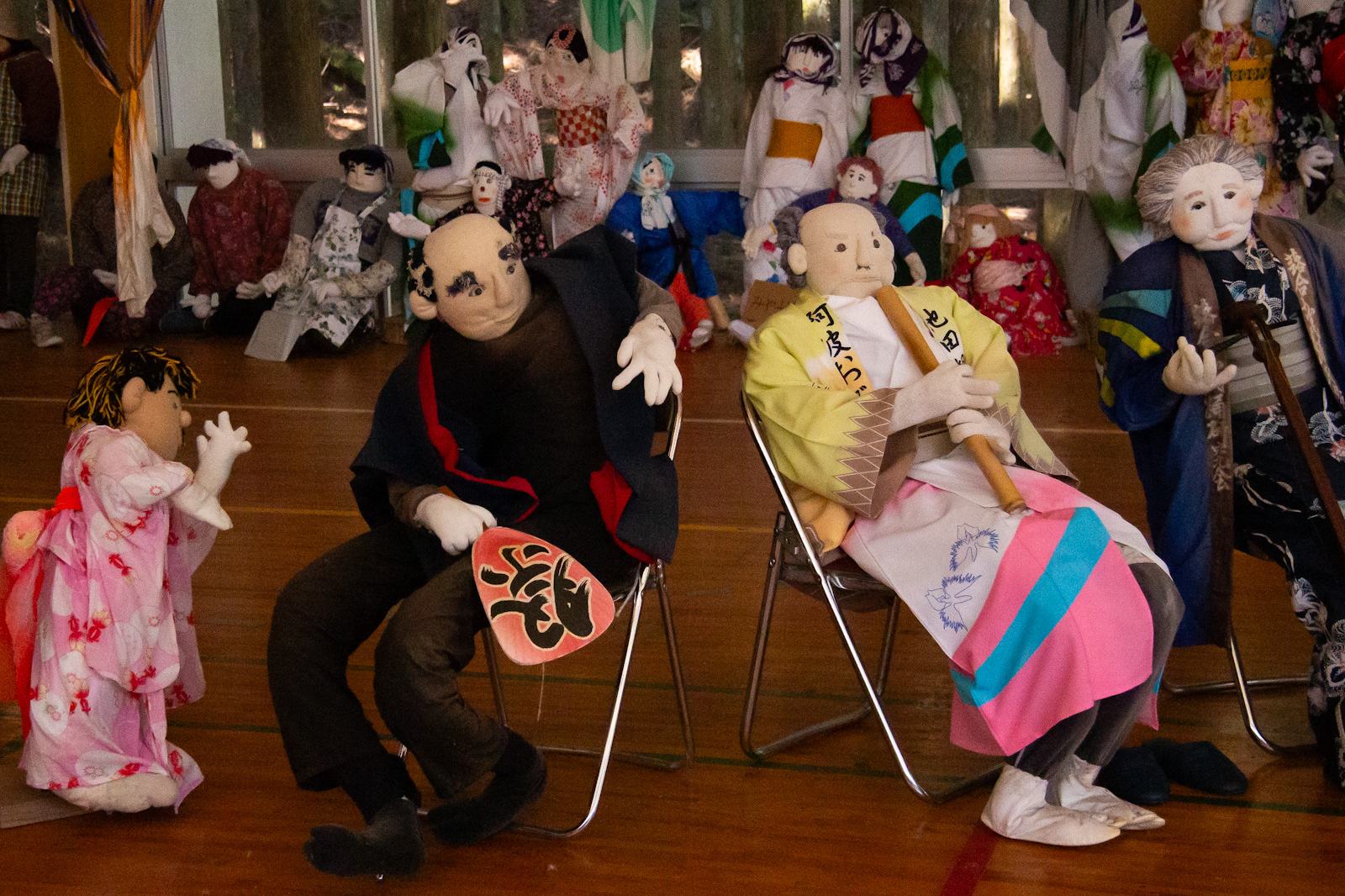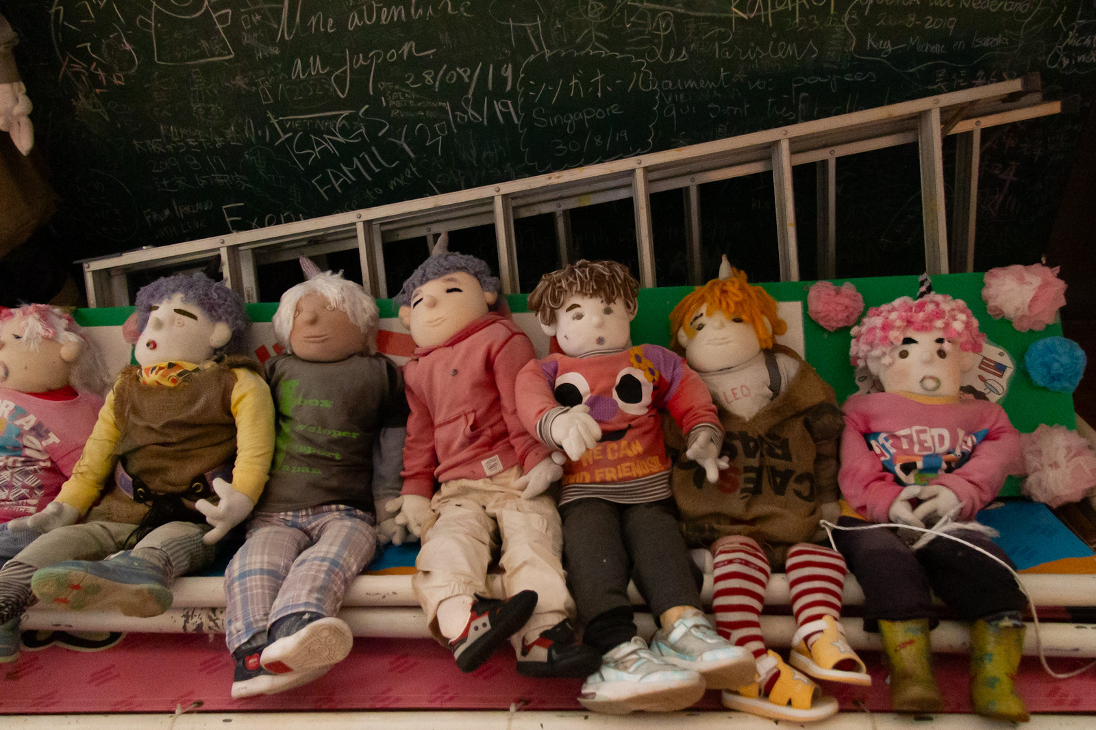 How could patchwork dolls look so human? I don’t know, but the more time I spent around them, the more they felt alive. There’s a common belief in Japan deeply rooted in Shinto that holds that everything, animate and inanimate, contains a life force, or kami. And if you didn’t believe in it before, I think visiting Nagoro would change your mind. This, I thought, as I looked around the gym of the former elementary school, where hundreds of faces propped up against walls and chairs and gym mats stared back—right into my soul.